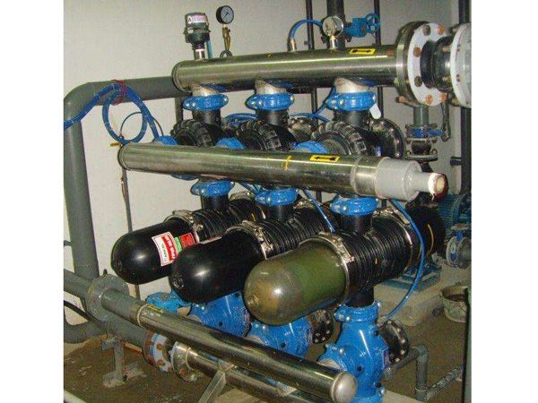 反沖洗過濾器,是一種利用濾網直接攔截水中的雜質,去除水體懸浮物顆粒物,降低濁度凈化水質,減少系統污垢、菌藻、銹蝕等產生,以凈化水質及保護系統其他設備正常工作的精密設備。水由進水口進入自清洗過濾器機體,由于智能化(PLC、PAC)設計,系統可自動識別雜質沉積程度,給排污閥信號自動排污。