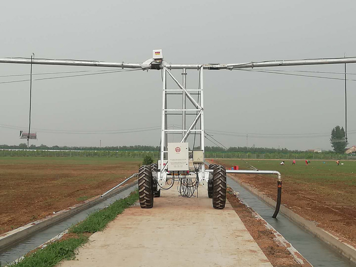 噴灌機從結(jié)構(gòu)上可分為:驅(qū)動塔架車、桁架、塔架、末端懸臂、行走與傳動、電控系統(tǒng)、導(dǎo)向系統(tǒng)和智能控制系統(tǒng)。